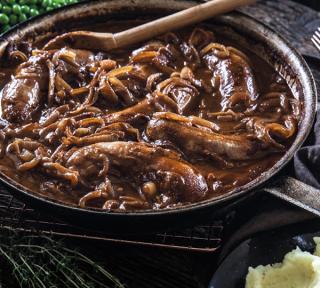 This classic meal is great served with mashed potatoes and lightly cooked green veges. If you're cooking for kids, tone down the cayenne to suit their taste. We've suggested pork, but you can use whatever good-quality sausages you like. You can also make this meal in a slow cooker.