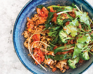 Any leftover cooked rice will work here, but we prefer to use basmati rice or brown rice.