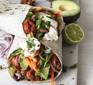 To serve, divide beef mixture between tortillas, arranging in a line down the centre and leaving a little space along the bottom.