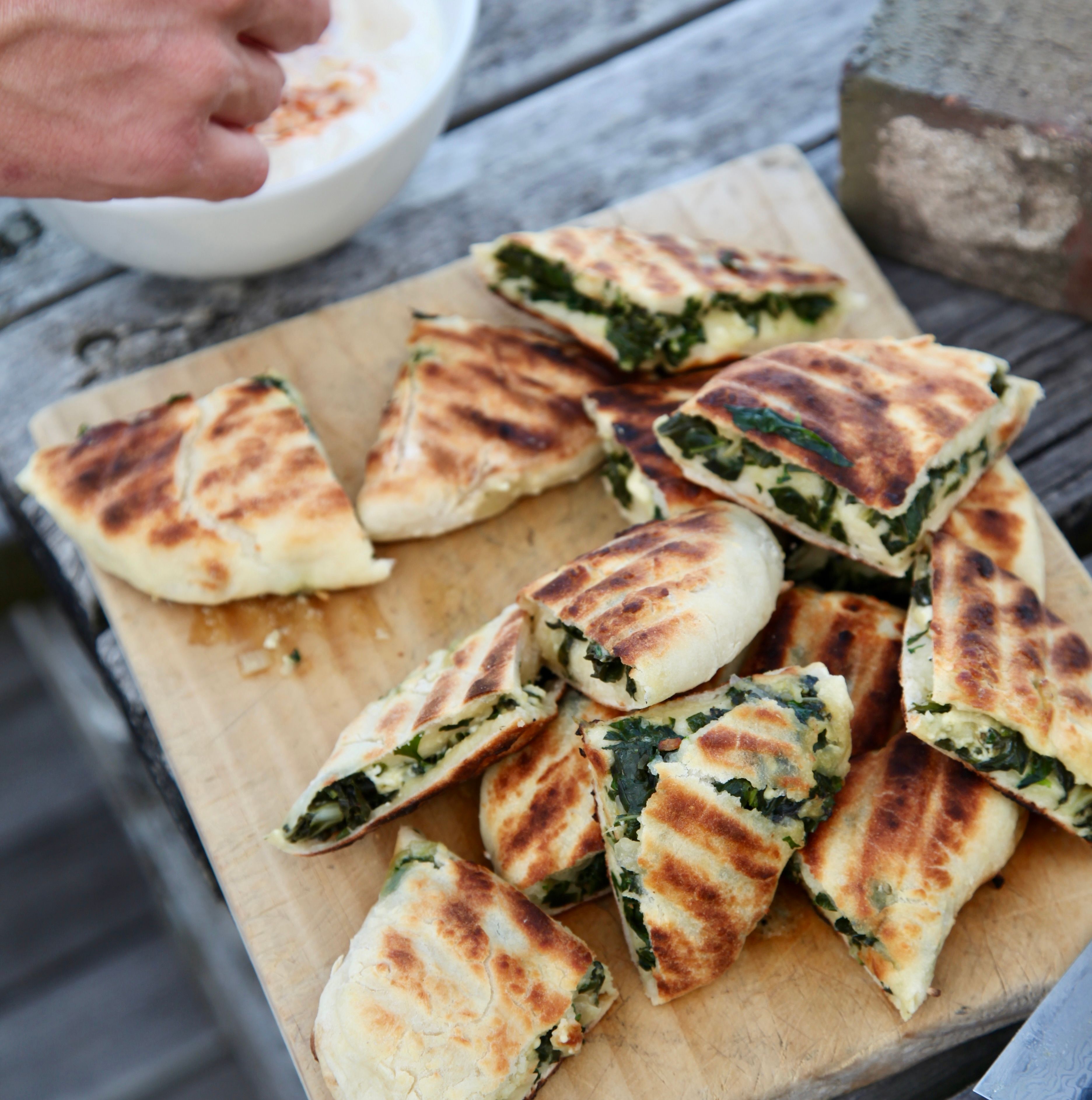 Inspired by gözleme, one of our favourite Turkish treats; a savoury flatbread stuffed with amazing flavours. We like to cook these directly on the grill, but you can also cook them in a heavy frying pan over medium heat.