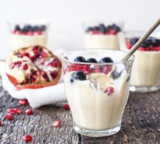It’s difficult to find another dessert that delivers so much for so little. Heating cream with honey and sugar then adding lemon juice creates a delicious mixture that sets to a dense, spoonable consistency. This dessert can be made up to 24 hours ahead and if you don’t have berries and pomegranate you can top it with other types of fruit of your choice. We sometimes like to present it in dainty antique teacups.