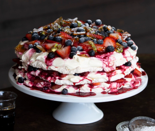 Layered Meringue Torte with Berries & Praline