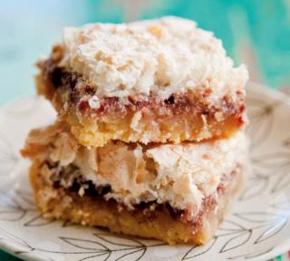 Cool cooked base for 10 minutes, then spread with jam and top with Coconut Meringue Topping.