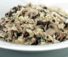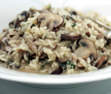 Add the garlic and cook for a minute to soften, then add the mushrooms and water. Increase the heat to medium and cook until mushrooms are softened and water has evaporated, stirring occasionally (6–8 minutes).