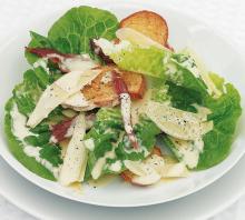 Just before serving, add oregano, basil and parmesan or pecorino. Tear bruschetta, crostini or croutons into bite-sized pieces, add to the salad and toss gently to combine.
