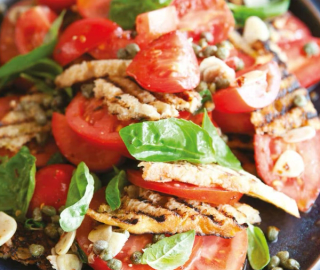 Heat the oil in a frypan and gently fry the garlic, anchovies, capers and chilli flakes for about a minute to soften, taking care not to brown the garlic. Mix into the tomatoes along with the vinegar and pepper.
