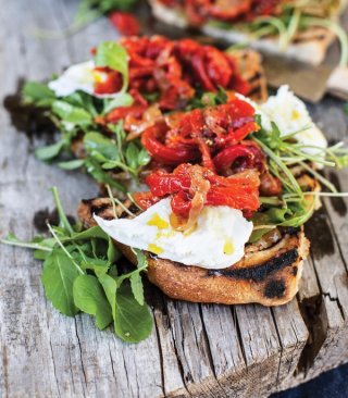 This is the perfect put-together for last-minute entertaining. You can make the piperade a few days in advance and assemble the bruschetta just before your guests arrive.