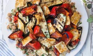 When ready to serve, stir parsley and pine nuts or sunflower seeds, if using, into couscous mixture, pile on to a serving platter and top with the grilled vegetables and halloumi. Serve warm or at room temperature.