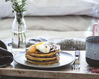 We often use ricotta in hotcakes, cakes, muffins and pancake batters. The acidity helps tenderise gluten and prevents proteins from forming, and it adds a lovely light texture and keeps baking moist. We like these with yoghurt and lemon curd but they are equally delicious served with bacon, bananas and maple syrup.
