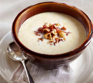 Roasted hazelnuts and crispy bacon make the most wonderful garnish for this soup. You could use just hazelnuts but the combination of both makes this soup really special.