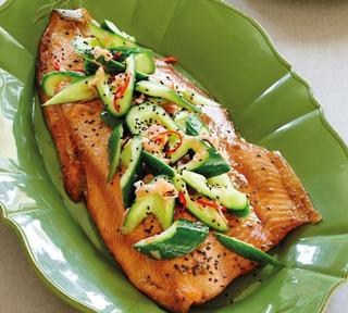 This is such a useful special-occasion dish because you marinate the salmon and make the Pickled Cucumber in advance and leave it in the fridge until you’re ready to eat. Then the salmon takes only about 10 minutes to cook to that melting state of medium-rareness.