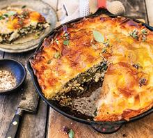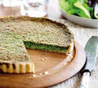 Annabel's mother made this savoury tart often, and it's still the best we've tasted. It has a denser texture than a quiche and a wonderful green colour. We have doubled the recipe so you can freeze one for later — they freeze beautifully.