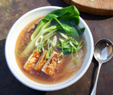 I’ve scaled up the original recipe here to serve four people. This is also good with lightly cooked broccoli, and shredded daikon radish added. For a vegan version, replace the salmon with tofu. Pan-fry bite-sized slices of firm tofu in a little oil and then mix with a little of the dressing as per instructions for salmon.