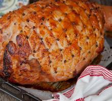 Brush ham all over with Brown Sugar Glaze and bake until golden (about 1 hour), basting with remaining glaze as needed.
