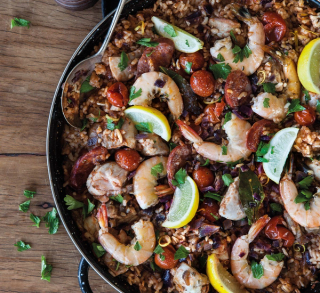 This is such a brilliant way to cook paella in the oven — everything goes in at once.