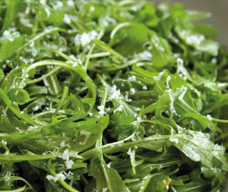 Toss rocket or spinach and parmesan in a large salad bowl.