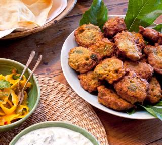 We like to make these tasty snacks using beer as a raising agent. Make sure you dice the vegetables very finely as they are only in the oil for a short time.